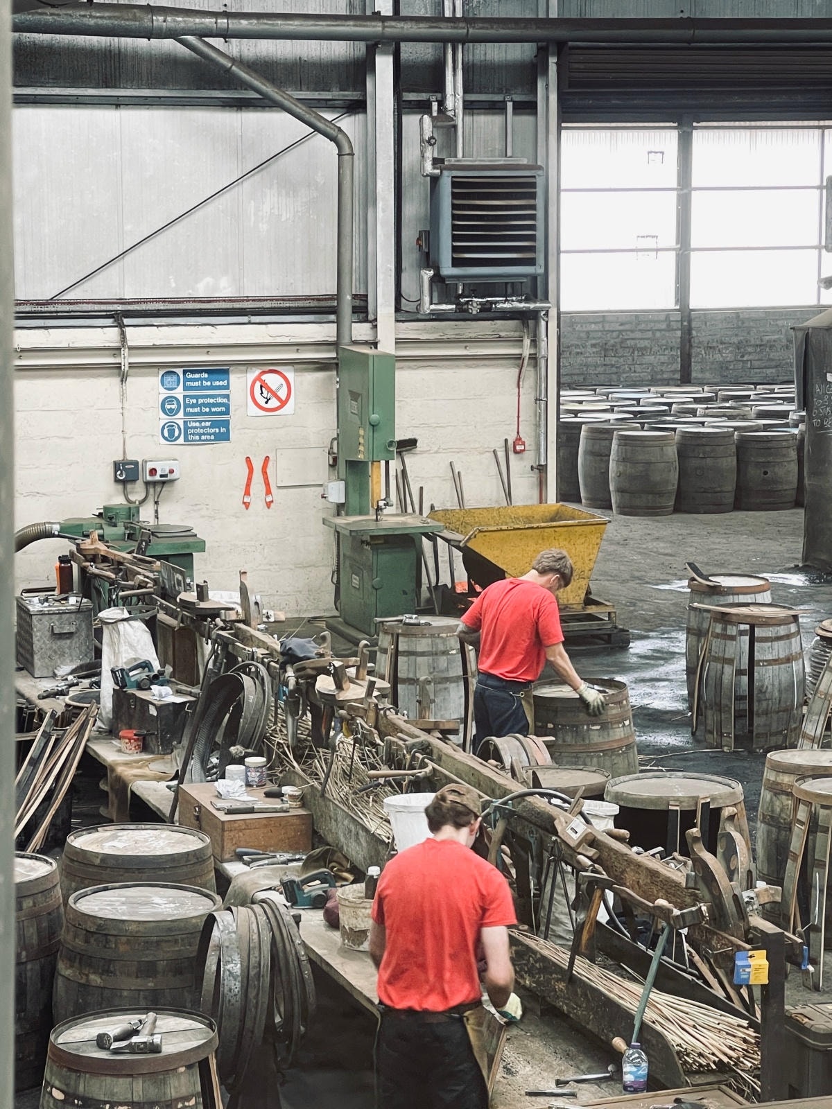 按照蘇格蘭法律,威士忌必須在「橡木桶」中熟成至少「三年零一天」才能被稱之為「蘇格蘭威士忌 Scotch Whisky」。這個過程不僅是必要條件,更是賦予威士忌風味的關鍵環節。如今,蘇格蘭各地倉庫與酒廠中約同時有2200萬桶威士忌正在靜靜熟成,每天還有超過一萬公升的新酒被蒸餾出來等待入桶,如此高的橡木桶需求,足以可見製桶廠在整個威士忌產業鏈中所扮演的關鍵角色。