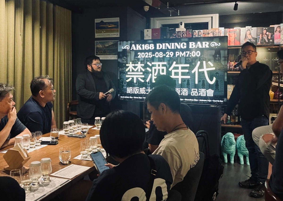 今天第一次來到AK168參加品酒會。由老朋友小威廉主講,喝的是Douglas Laing旗下Speakeasy系列的選酒。覺得竹北人很幸福捏~就在高鐵站旁走路不到三分鐘的地方,就有一個酒款這麼豐富的威士忌酒吧可以喝酒!!